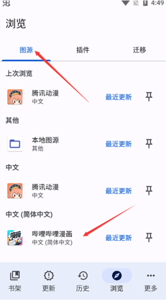 4、然后你就可以点击“图源”,找到刚刚安装好的哔哩哔哩漫画,点击进去。