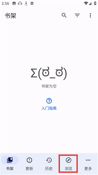 1、在书架为空的页面点底部的【浏览】选项,就能进入资源浏览界面,后续可挑选喜欢的内容啦。