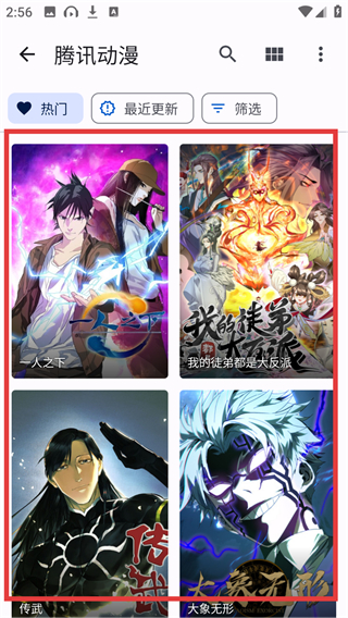 3、进入【腾讯动漫】的资源页后,能看到《一人之下》等作品,选目标作品就能进入详情页面啦。