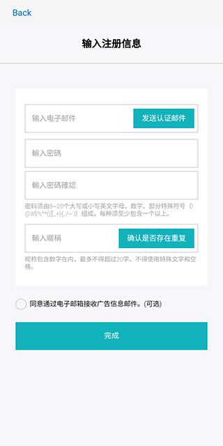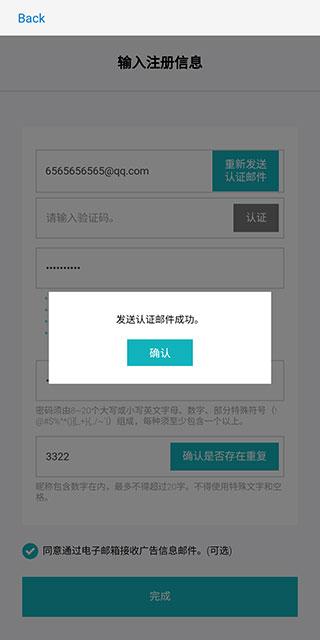 5、输入各项注册信息,并输入邮件验证码,完成【邮箱认证】。