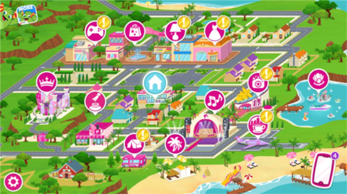 3、芭比世界:能与其他角色进行互动,与他们交流可以了解到更多关于芭比世界的信息,这个是属于芭比公主们的家园。