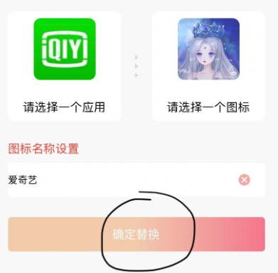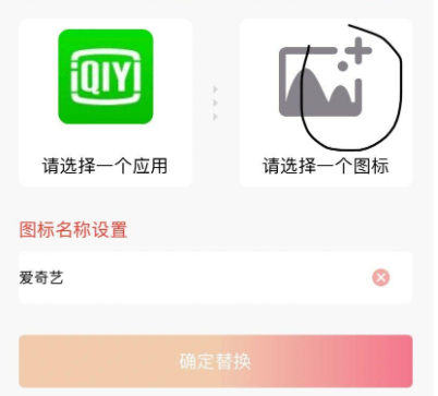 2、选择另一个图标,这个图标可以是图片,也可以是其他app的logo,之后点击【确认替换】;