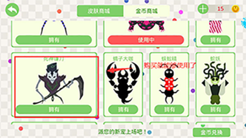 3、购买之后,点击已拥有就可以切换皮肤当死神了。