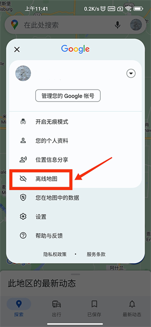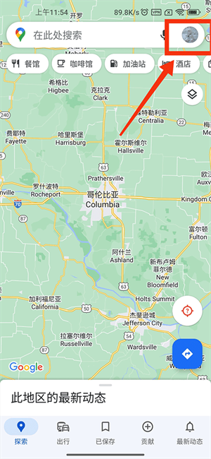1、下载好google地图后,直接进入,在首页中选择右上角的符号。