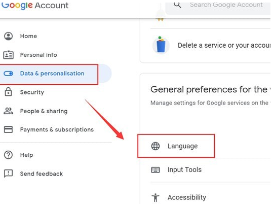 2、然后我们在页面上点击打开“data”选项,接着在右边页面上点击打开language选项。