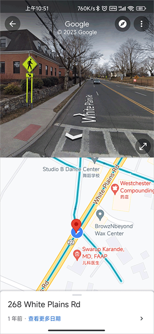 3、街景功能:街景功能可以让你在城市中自由行走,查看街道、建筑物、商店、景点等,像在现实中一样让用户进行探索。