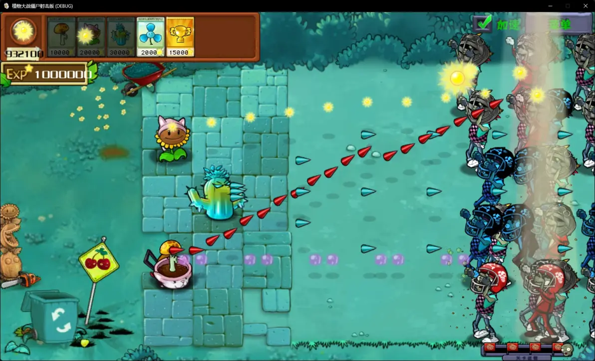 2、根据植物类型的区别,将提供对应的攻击方式,植物会自动对攻击范围内的僵尸进行攻击;