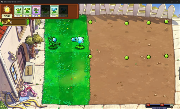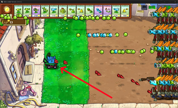 2、可以看到地形相比起原版游戏进行了一定的变化,你只能够在最后三列的格子上面种植植物。