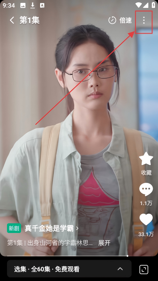 1、在剧集播放页面,点击右上角三个点,能打开设置菜单,有超多播放相关选项呢。