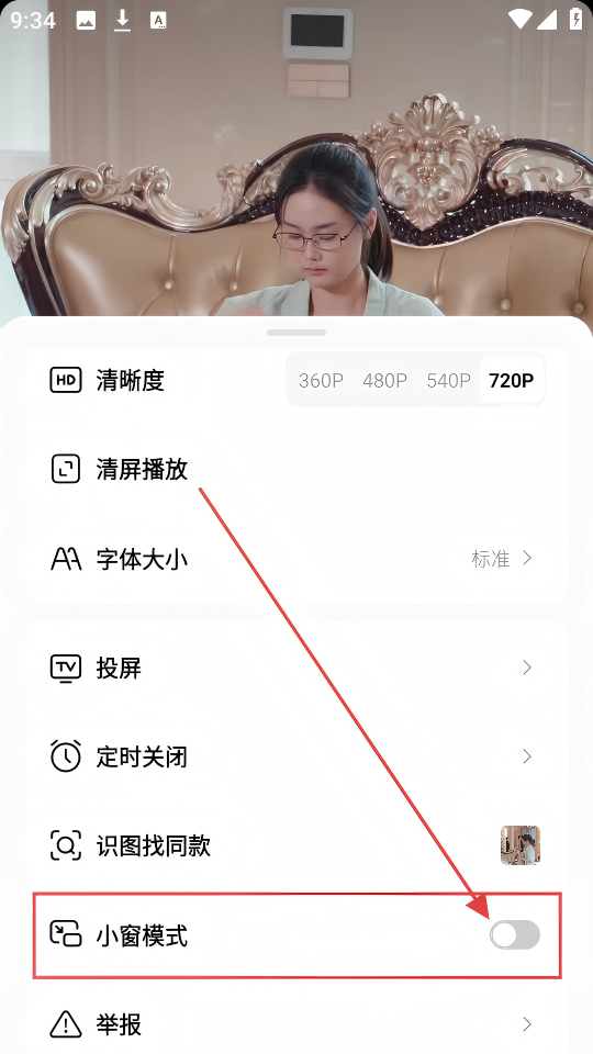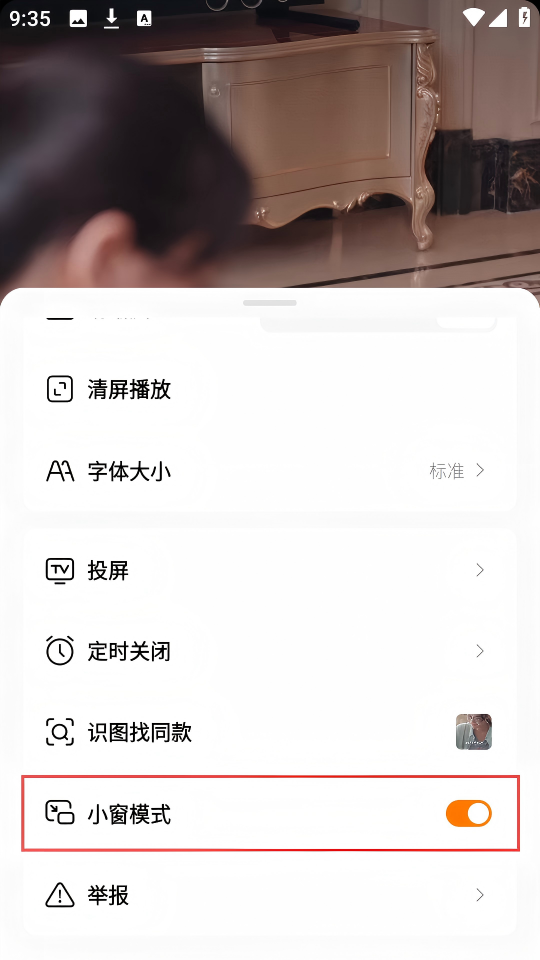 4、开启权限后,再打开设置菜单,就能成功开启【小窗模式】,可以边看剧边做别的事情啦。