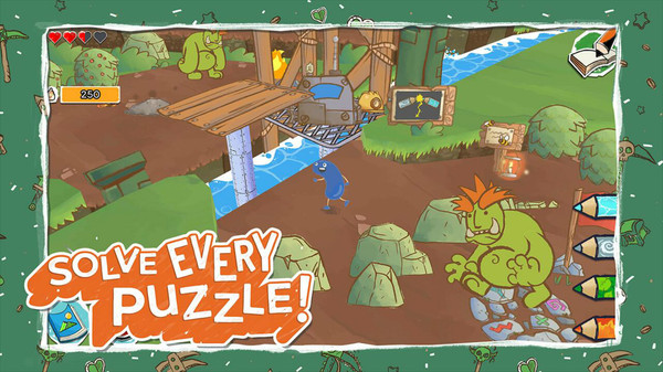过去后到达山上,会发现一个电线杆,在上面画乌云,画浓一点,闪电会大一点,通电后会激活一个机器人,机器人好搞笑的,跟着他就会有路啦!顺着路向左上角前进,就可以啦!