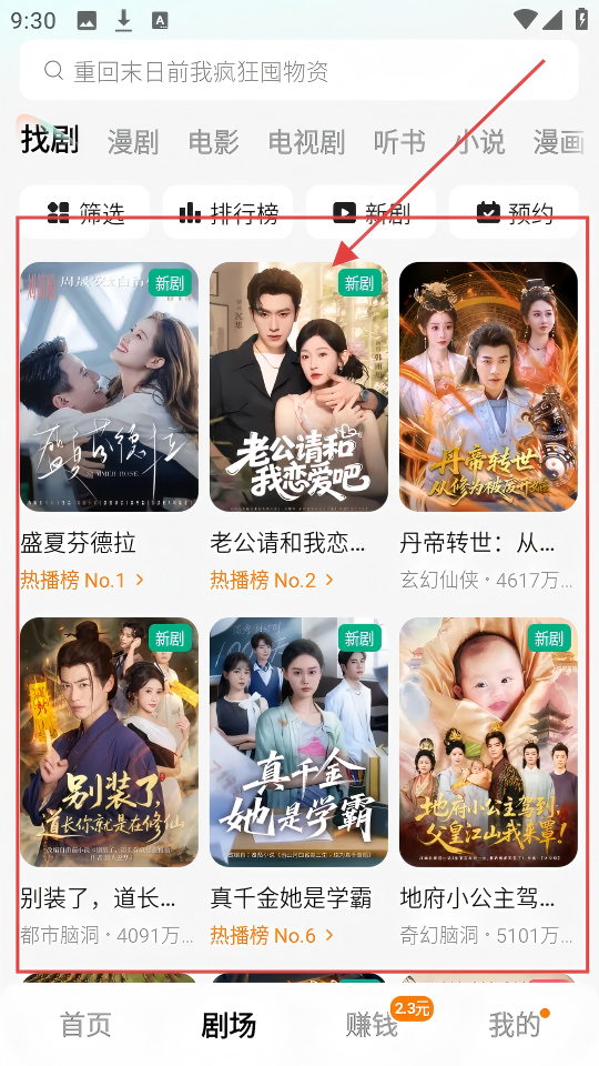 1、在剧场页面,有很多新剧,找到想看的,点击封面就能进入播放页面,超方便。