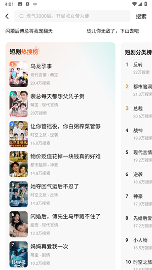 2、点击上方搜索功能,可搜索喜欢的短剧;