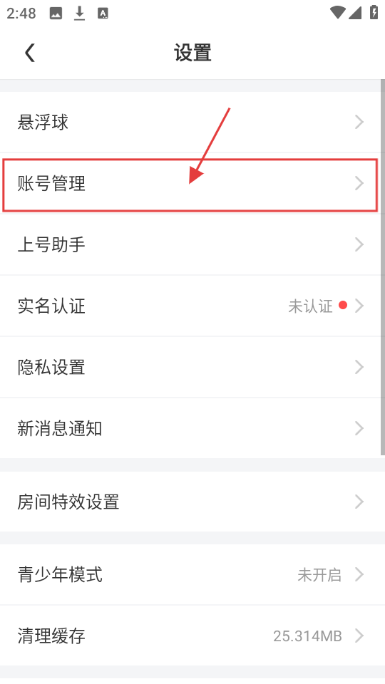 2、在设置页面,若想管理账号,点击【账号管理】,就能进入账号管理页面哦。