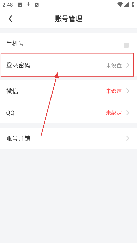 3、进入账号管理页面,若想设置登录密码,点击【登录密码】,就能进入设置登录密码页面啦。