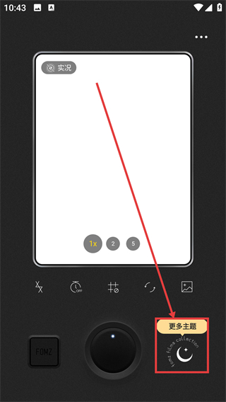 1、在相机界面点击【更多主题】按钮,就能打开主题选择面板,查看各类相机风格主题啦。