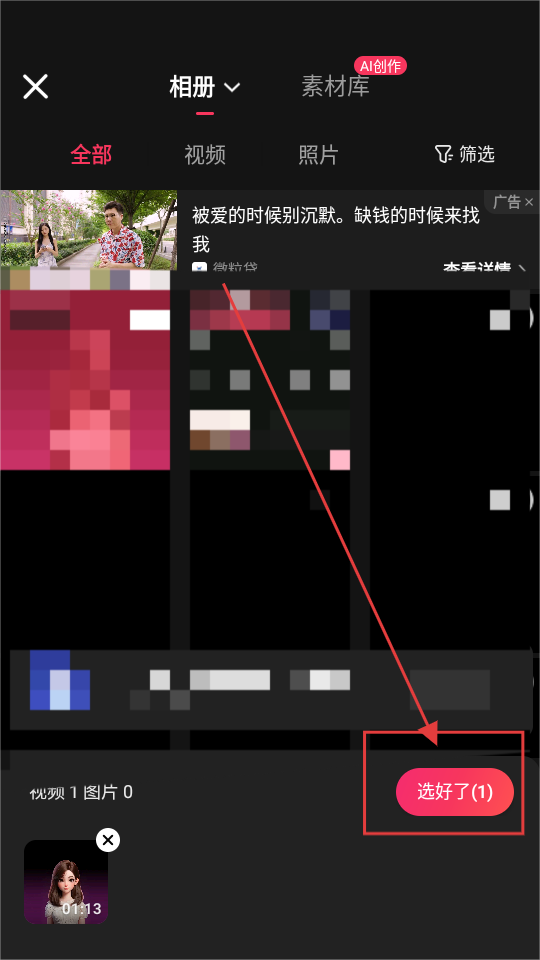 2、进入相册选择要剪辑的视频,选好后点击【选好了】按钮,即可导入视频哦。