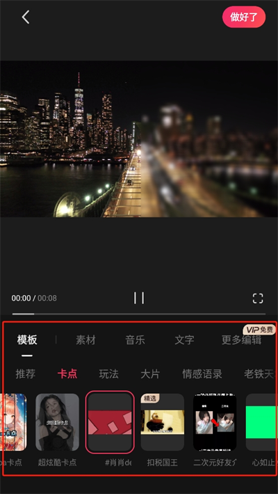 5、当你选择好想要的视频模板后,点击右上角的【做好了】就能进行内容的保存了;