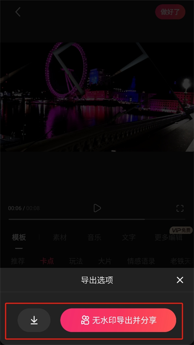 6、视频的保存有两种,你可以根据自己的需求选择不同的保存方式,比如直接无水印保存或者无水印导出并直接分享。