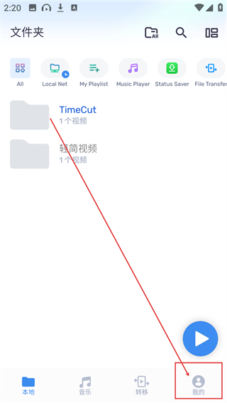 1、在文件夹主界面点击底部【我的】选项,就能进入个人中心页面,查看各类功能设置入口啦。