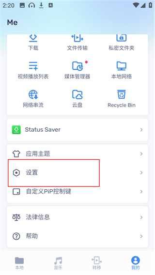 2、进入个人中心后点击【设置】选项,就能跳转到设置页面,查看播放器、解码器等配置项哦。