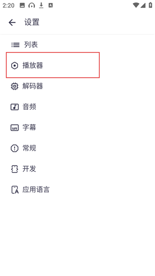 3、在设置页面点击【播放器】选项,就能进入播放器设置页,调整界面、控制等播放相关参数啦。