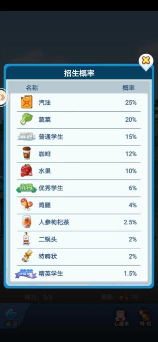 主要分为超常发挥率和超常发挥值,如果想要在考试和竞赛中取得更好成绩,它们可是必不可少的,可根据提示消耗汗水进行选择升级。