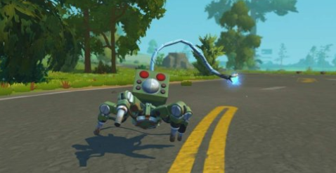 6、和这个生物战斗的时候,你可以一边闪避,一边回去,用我自己找到的方法,把你手里的大锤扔向这个朋友,你可以用5次击中它来降低它。总共。当你杀死它时,会掉落一条金属腿和一个随机物品。当你人数较多时,这绝对是致命的,有时甚至一个就足够了,作为附加信息,我们可以在短时间内击倒干草机器人扔一桶水,我们就能赢几步