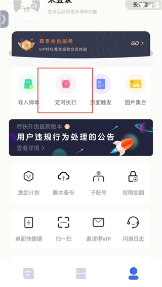 2、在功能中心页点击【定时执行】选项,就能进入定时任务配置页面,准备设置自动执行的时间哦。