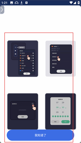 4、在定时引导页可了解选任务、设时间的流程,点击【我知道了】就能进入实际配置环节啦。