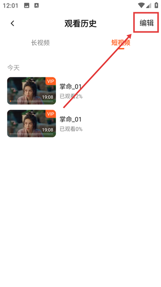 3、在观看历史页点击右上角的【编辑】按钮,就能进入记录的编辑模式,准备管理观看记录啦。