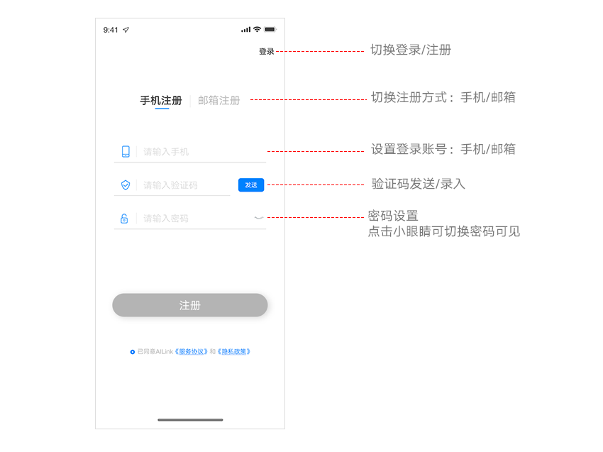 ① 设置账号:选择注册的方式:手机或者邮箱,录入内容,此账号用于以后登录使用;