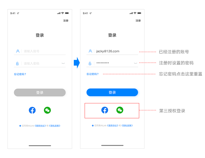① 账号+密码登录:通过注册设置账号和密码,使用设置的账号+密码进行登录;