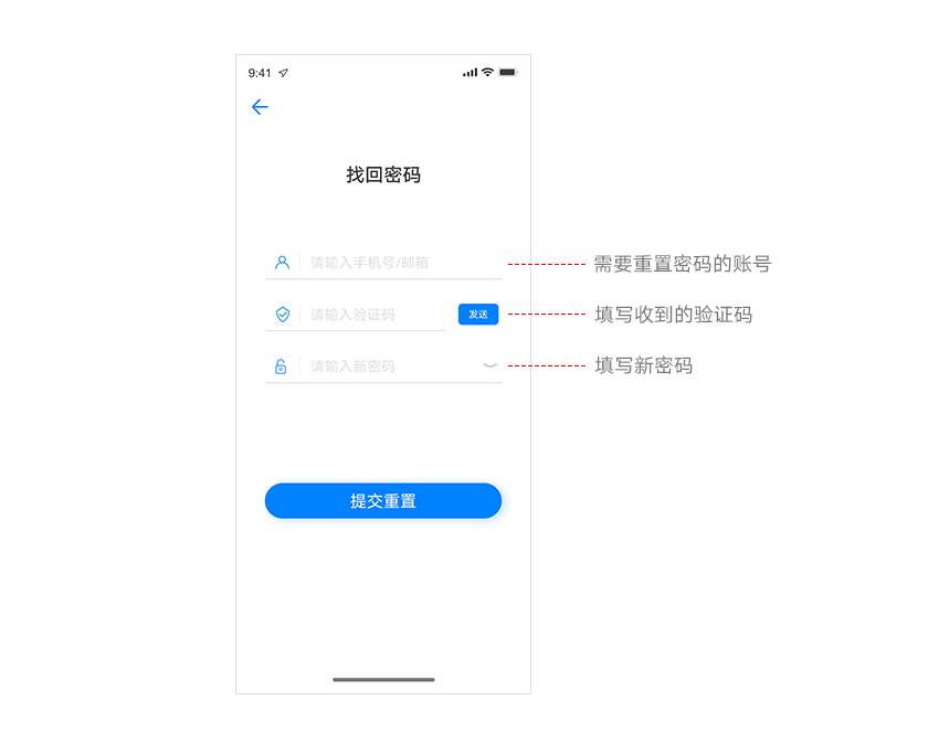 ① 录入需要找回密码的账号;