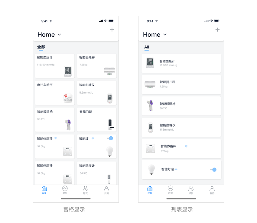 ① 切换设备页显示方式:列表和宫格;