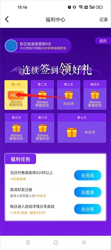 1、打开软件,点击底端的“游戏”选项,然后点击“领福利”选项。