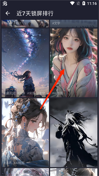 2、在“排行”页面里,可以查看“近7天壁纸排行”、“近7天锁屏排行”和“近7天收藏排行”,这里是不错的参考。