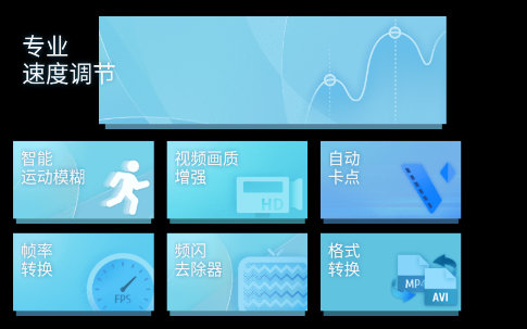 1、专业变速:拥有非常专业的速度变化器,可以帮助用户随意调整视频的速度,编辑操作可以更加灵活修改视频中问题。