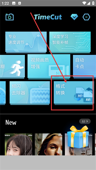 1、在TimeCut首页点【格式转换】功能,能进入格式转换的操作流程,后续可处理视频格式啦。
