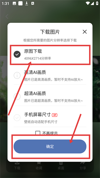 4、在下载图片页面选择【原图下载】,点击【确定】按钮,即可完成图片下载啦。