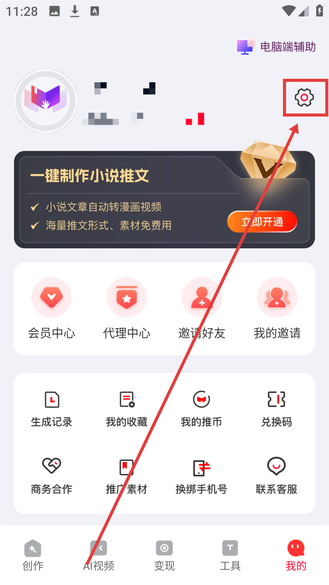 2、在个人界面点击设置图标,进入设置界面,准备进行账号管理啦。