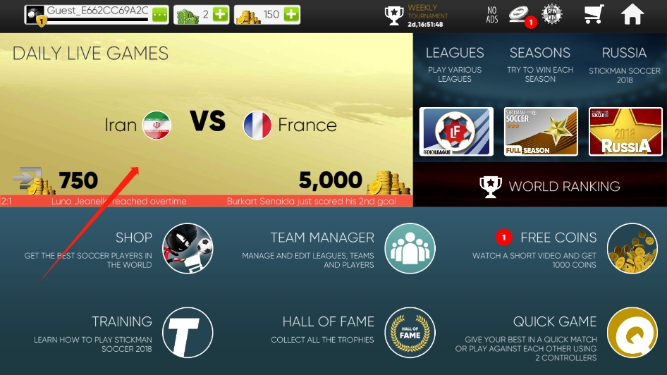 4、经典形象:其中的所有角色形象都是采用的火柴人形象设计,可以给玩家带来轻松愉快的感受,感受与众不同足球竞技挑战。