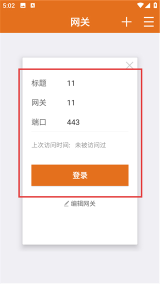3、保存后会显示已添加的网关卡片,确认信息无误后,点击卡片里的【登录】按钮尝试连接网关啦。