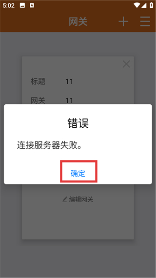 4、若出现【连接服务器失败】的错误弹窗,点击【确定】关闭弹窗,再检查网关信息重新配置哦。