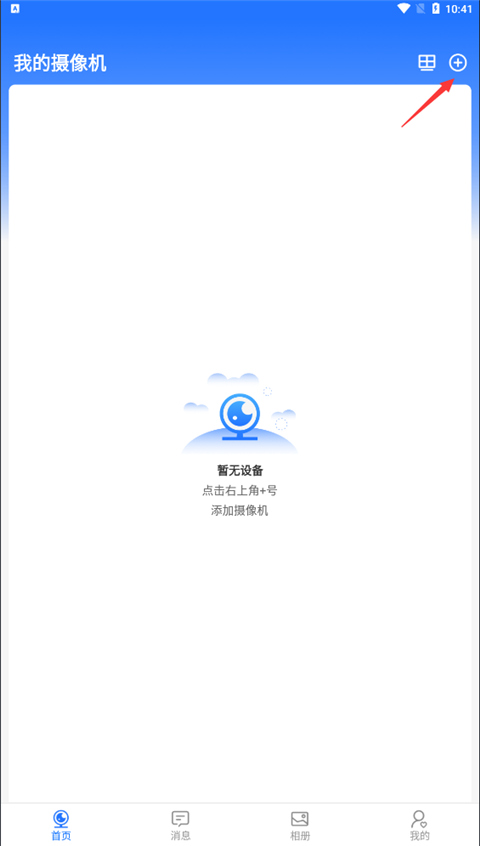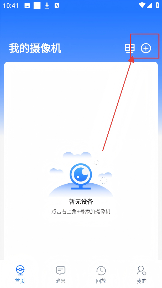2、成功登录之后,点击右上角的+号添加摄像头;
