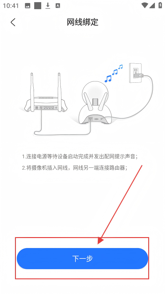 3、按提示连接电源、插入网线,完成后点击【下一步】继续操作。