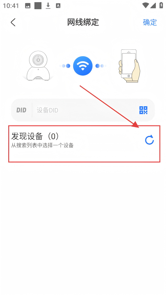 4、到设备搜索页面,若【发现设备-0】,可点击刷新图标重新搜索设备。
