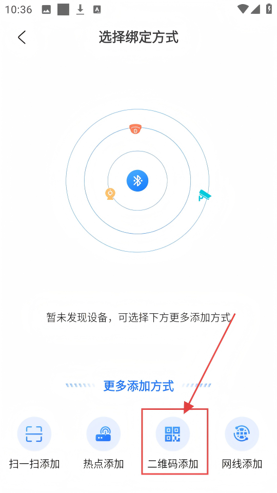 1、在选择绑定方式页面,点击【二维码添加】,就能进入WiFi绑定流程啦。