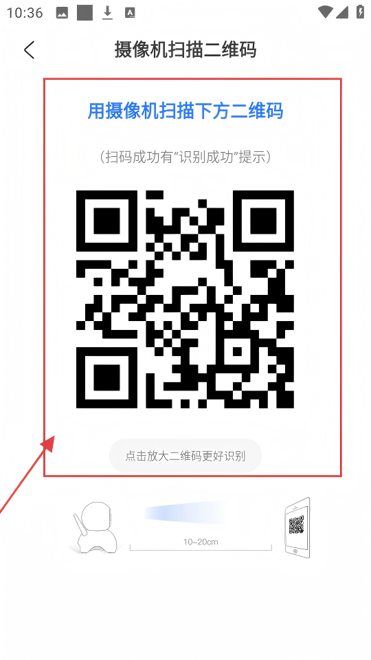 4、到摄像机扫描二维码页面,用摄像机扫描下方二维码,等待识别成功提示。