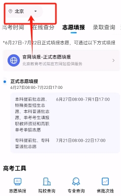 2、然后我们可以点击左上角的位置设置,来设置你要搜索的地方的大学,我们这里就由北京举例。